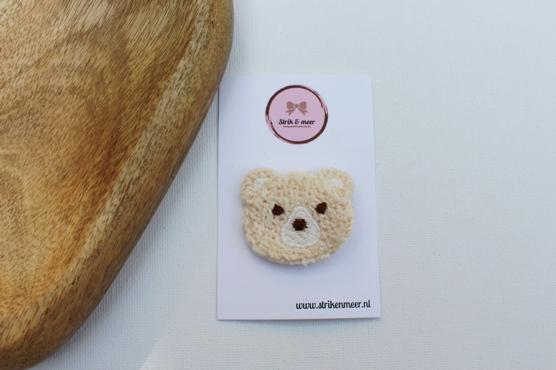 Schattig beertje in een mooie beige kleur. Het beertje is ongeveer 4cm groot en zit bevestigd op een alligator klipje van 3,5cm