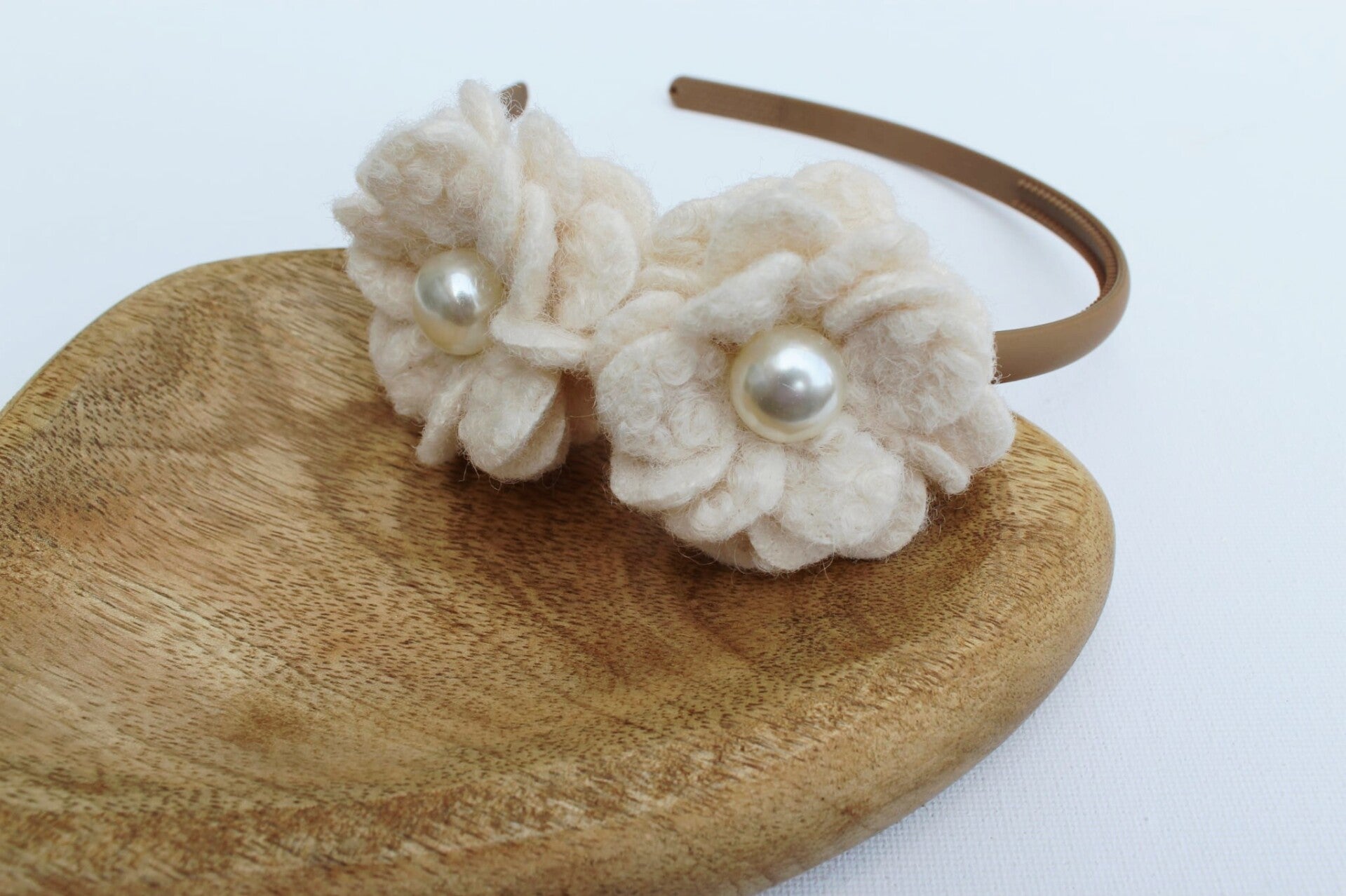 2 mooie teddybloemen naast elkaar op een diadeem. Keuze uit 6 kleuren en een diadeem met of zonder tandjes